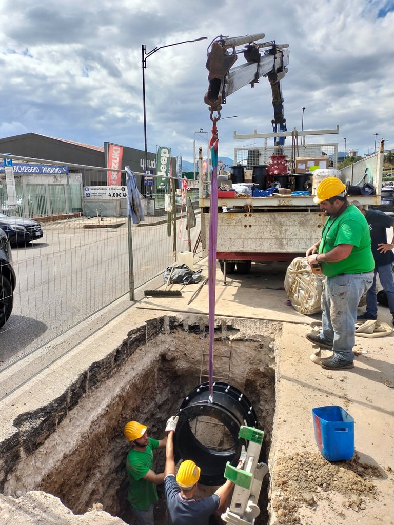 Interventi puntuali che hanno previsto l'installazione di misuratori di portata elettromagnetici dal DN80 al DN700 e valvole PRV, al fine di conseguire la distrettualizzazione e il monitoraggio della rete idrica al servizio del gruppo "Salerno Sistemi"